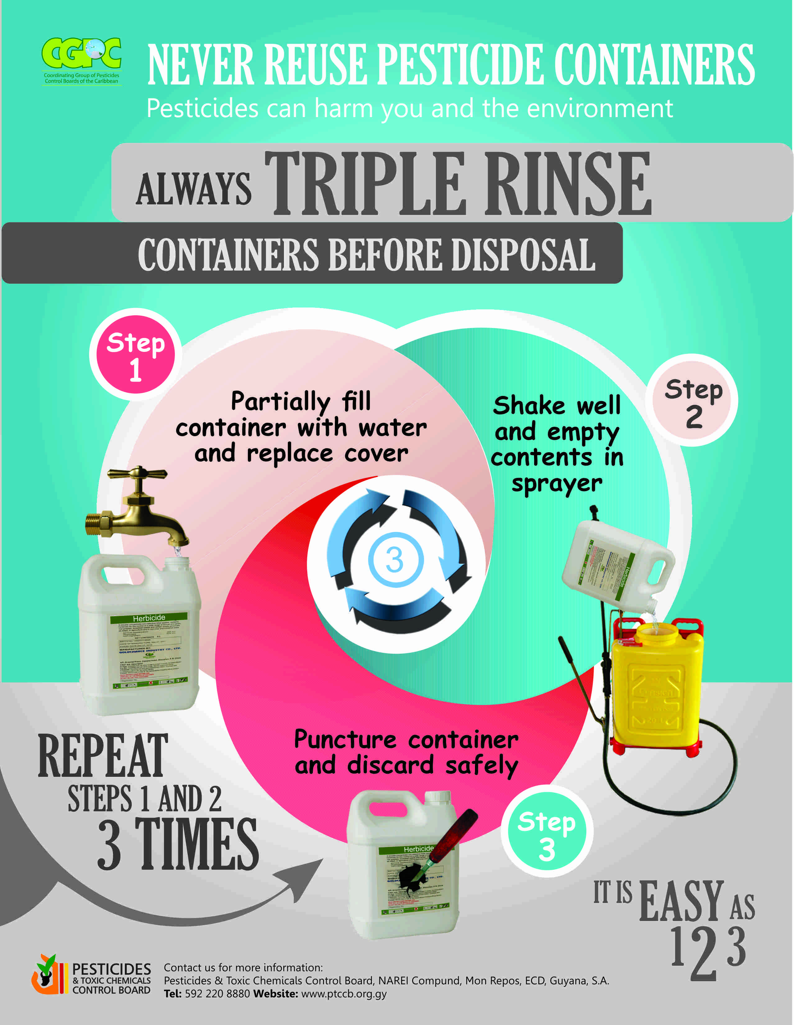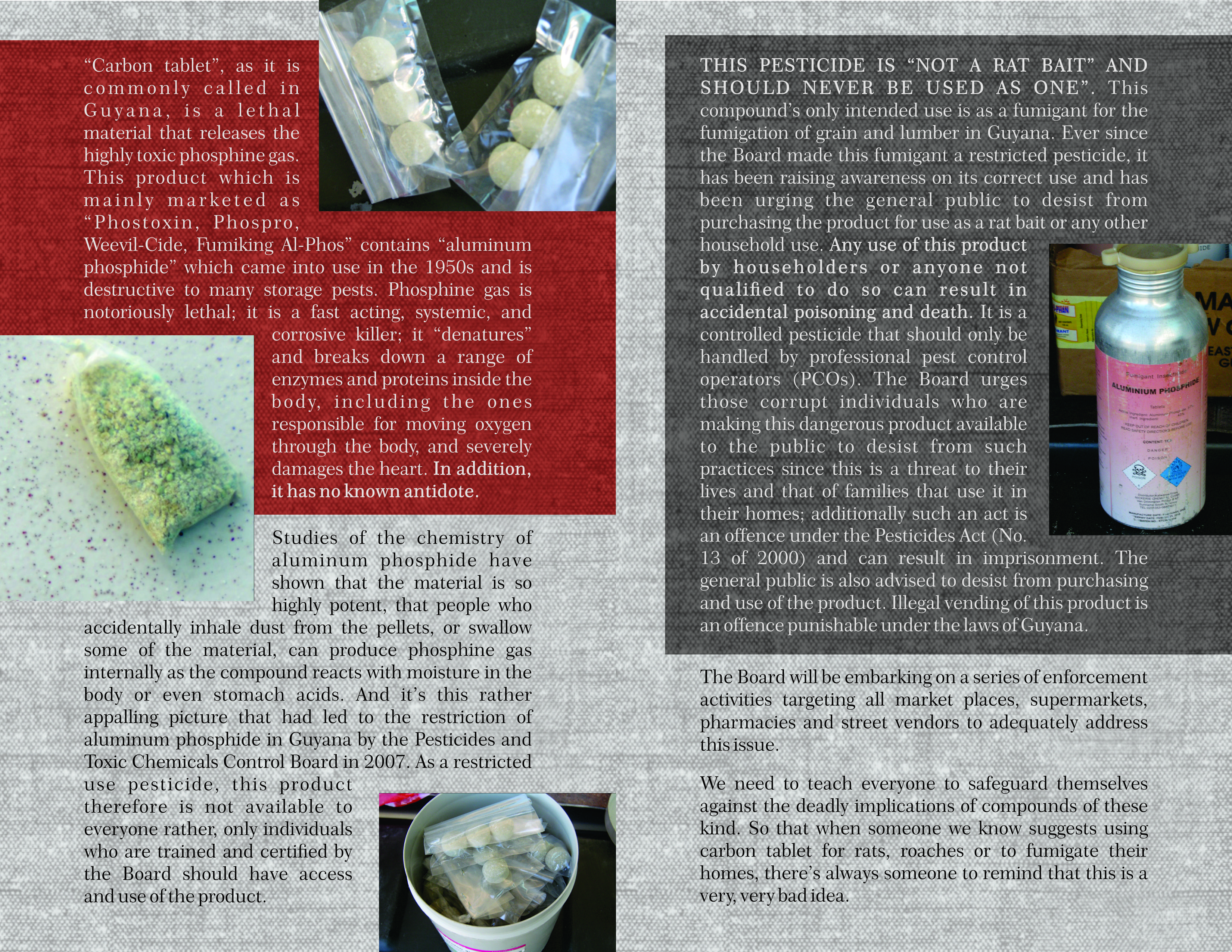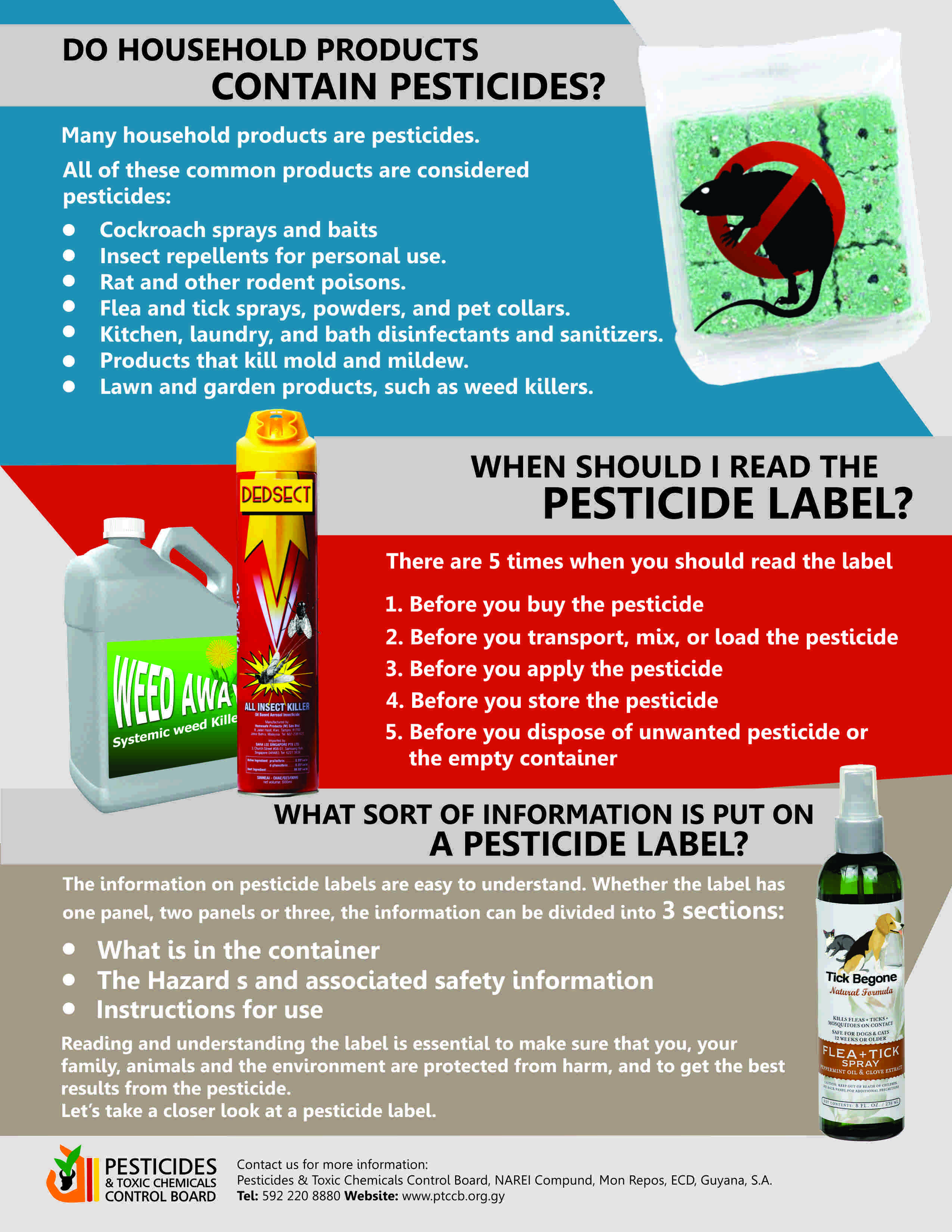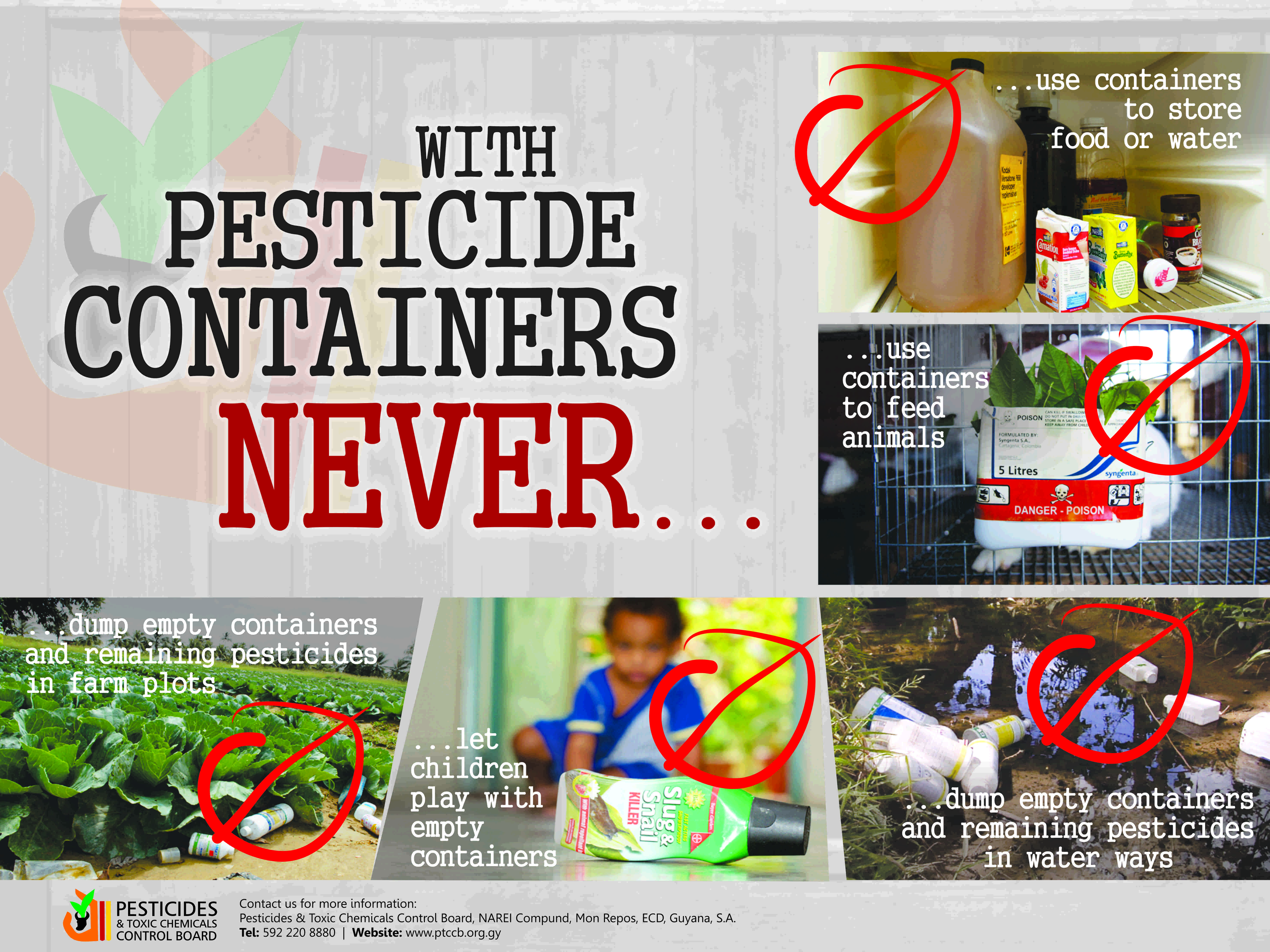The Board commenced its training programme for the year 2010. The programme envisaged a target audience of 1500 persons taking from the agriculture growing communities across the country. The trainings targeted farmers and farmhands within the sugar, rice and other crops sectors in regions 2,3,4,5,6 and 10. Participants were exposed to the safe techniques of handling, transporting, storing, spraying and disposal of Pesticides.